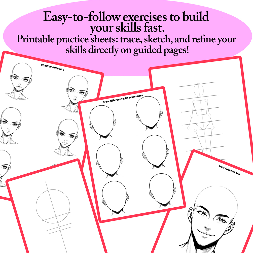 ✨Printable practice sheets: trace, sketch, and refine your skills directly on guided pages