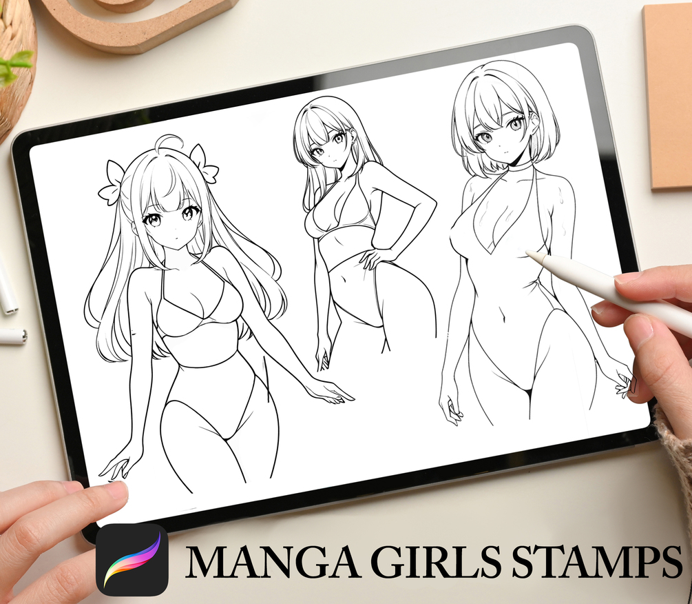 Procreate Cute Manga Girl Stamp Brushes - Procreate Anime girl stamps - Procreate Manga stamps